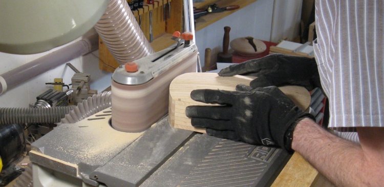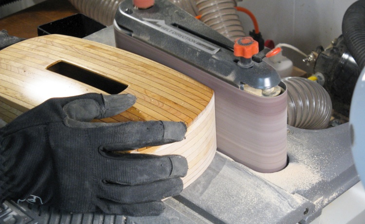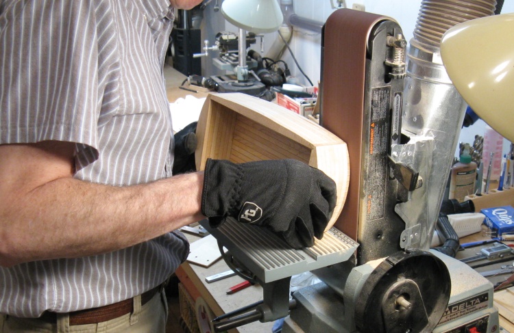 Then I switched over to the horizontal belt sander to do the sides and the ends. This was pretty easy since they were just convex curves to sand smooth.