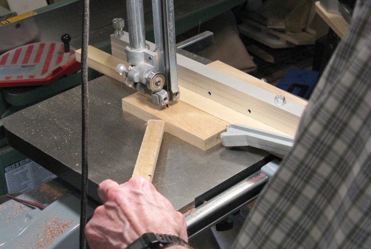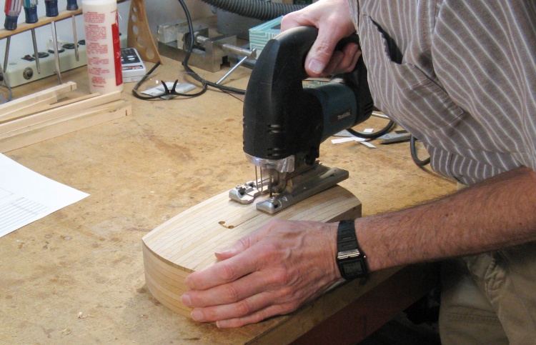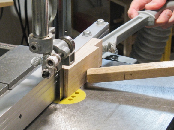 Then it was back to the bandsaw to remove the excess wood. I left about 1 mm of wood outside the line to give some margin for sawing error. That will later be sanded off to produce smooth curves.