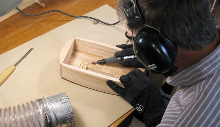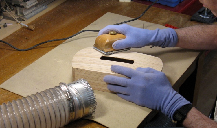 The last woodworking steps were to round off the opening and then sand the sides and top of the box, starting at 150 grit and ending at 320.