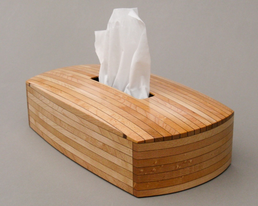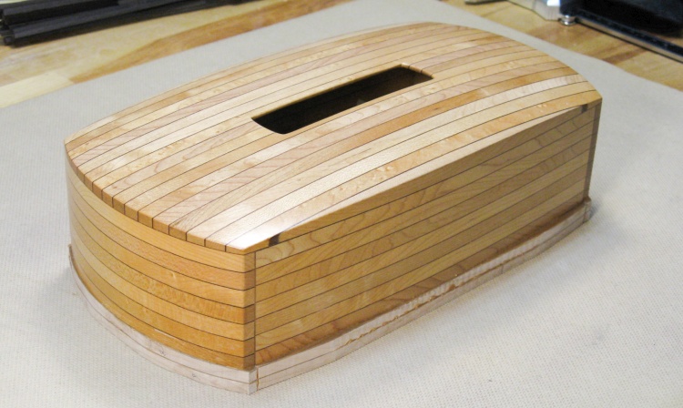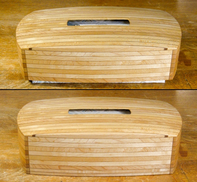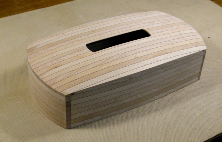 While I'm mostly not a huge fan of laminated pieces, a few designs appeal to me. One of those was the maple + walnut piece I had done a few years ago. I liked the (surprisingly wide) variety of grains that showed up in the laminations. Since I still had some of the wood left, I thought I'd make the new tissue box cover using the same construction.