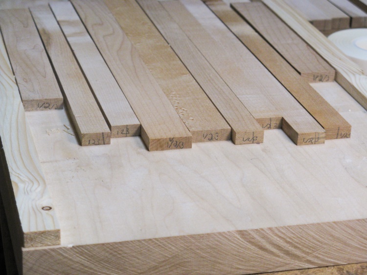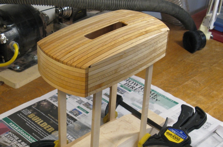I pulled out my saved pile of western maple pieces. These had been cut up from wider pieces with another project in mind, but I decided the tissue box cover was a better use for them. This project used up all the remaining wood except for a couple pieces.