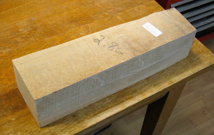There was originally some question as to the specific wood species used for the laminated cover (since it was made from scraps donated by a neighbour). But when I later bought this large turning blank of Western maple, I could see in it most of the grain patterns from the tissue box cover wood and decided that's what it likely was.
