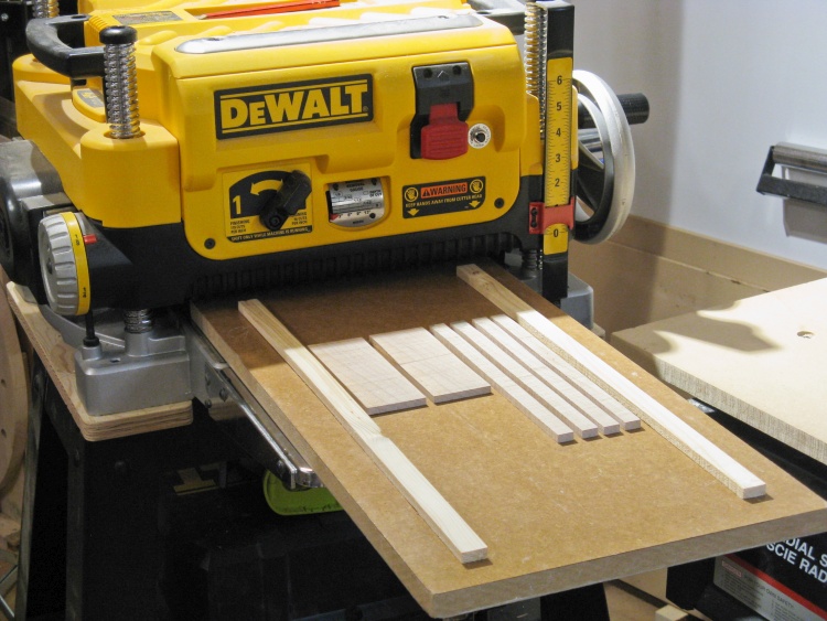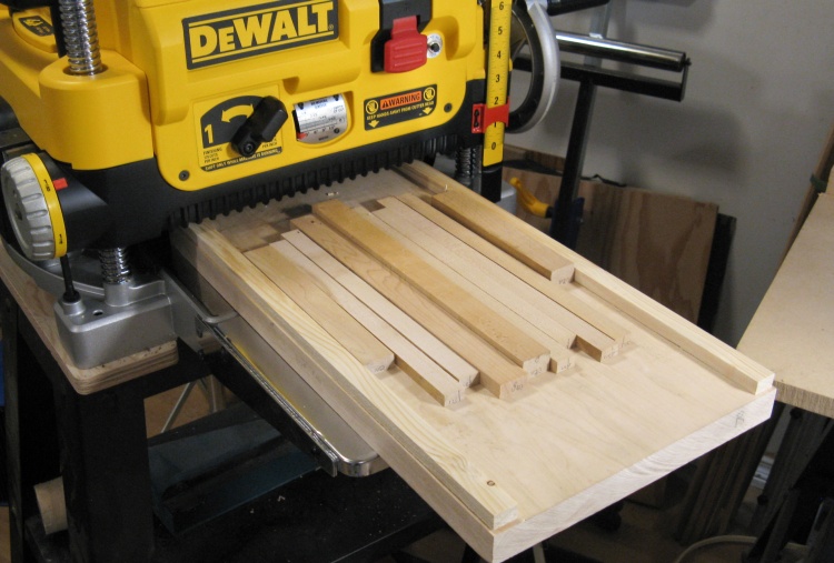 A couple months ago I decided I needed a new planer and the bright yellow Dewalt in the photo is the replacement. The old one had developed a sloped cut across the wood with the slope depending on the height. As a result, it had to be shimmed for each new cut, which became too much of a pain. It might be fine for many applications, but I had been doing laminated pieces and the slope would have been a big issue.