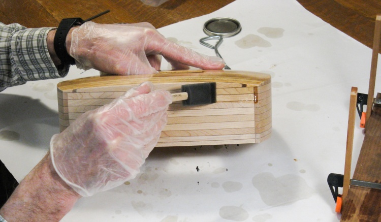 In this shot, the cover has the first of three coats of varnish applied to the sides. I also ended up adding two coats to the top as well.