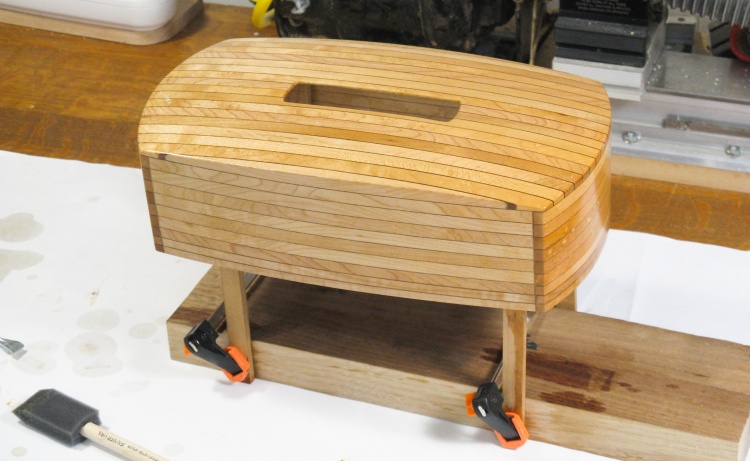 The pieces I had available were only about 2" wide, which precluded just laminating them together for a full-height cover. So instead, I constructed it from separately-laminated sides and top.