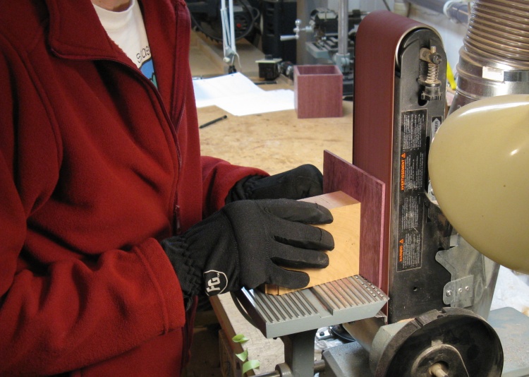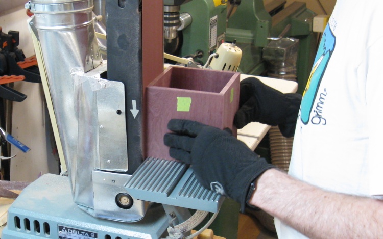 The cover was made a bit oversized, so then it was back to, yes, the belt sander to make the edges of the cover flush with the sides of the box.