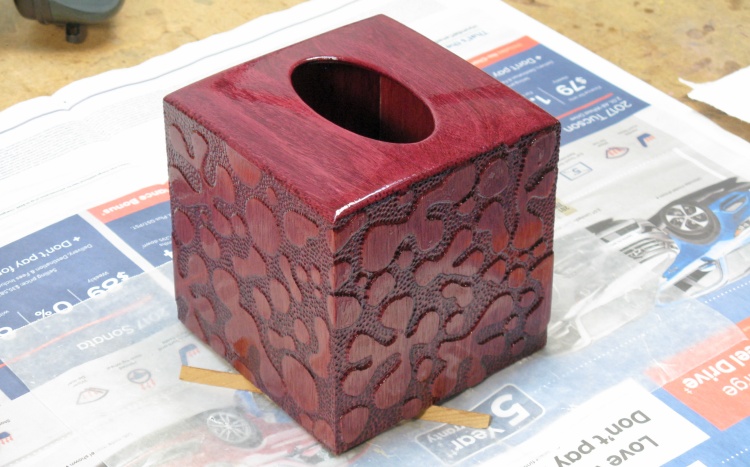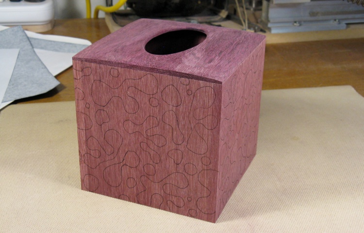 This shows the completed box, now ready for the patterns on the sides to be added.