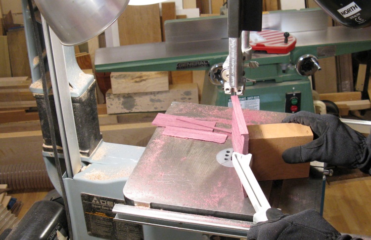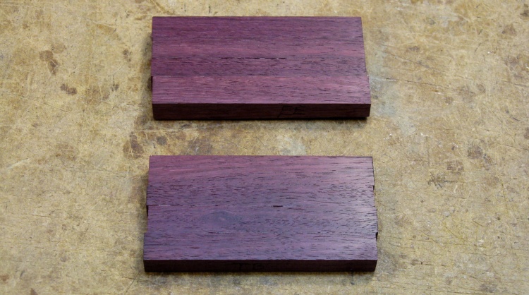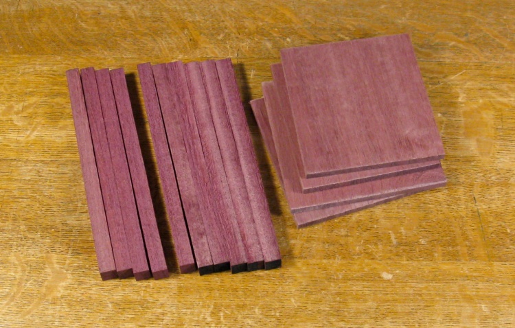 I had a bit of purpleheart in the shop, but not quite enough for this project. I didn't need a great deal of wood, so I just bought the 18" length shown here and used only part of it.