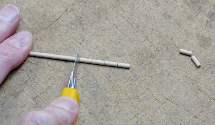 Chopping up 1/8" dowel for assembly pegs