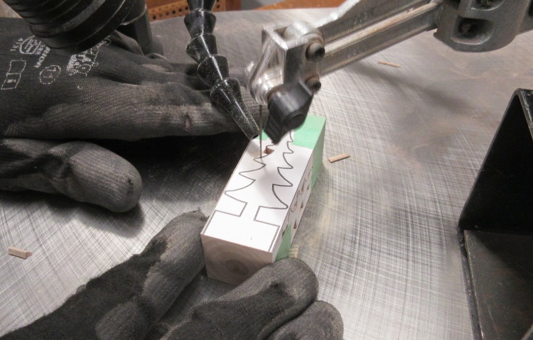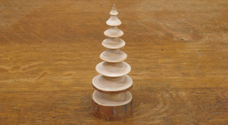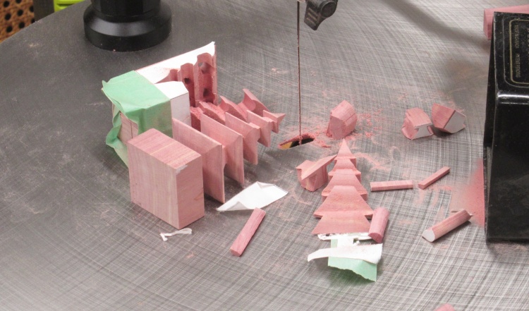 The thickest wood I thought it was practical to cut on the scroll saw was about 1.4" which should produce a tree close to the "large" turned tree size.