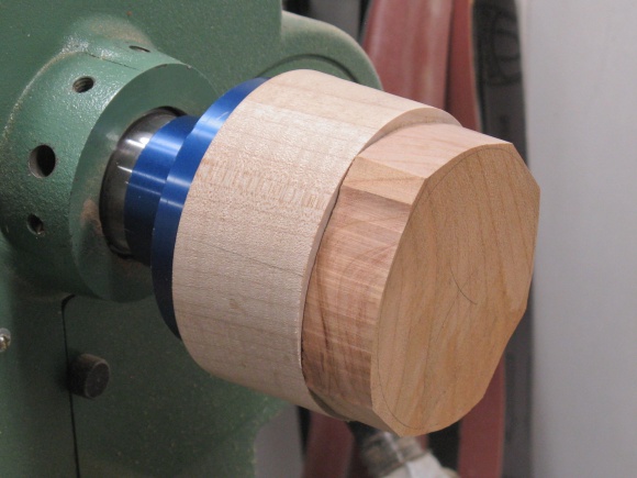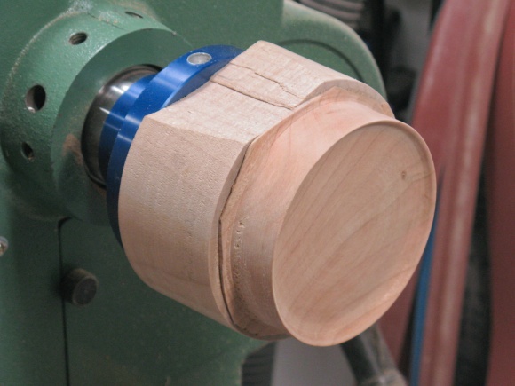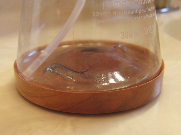 OK, so in the middle of making trees I needed to do a little mini-project much too insignificant to rate its own web page. It was just an hour or so of turning a slightly sloped base for a liquid soap dispenser bottle.