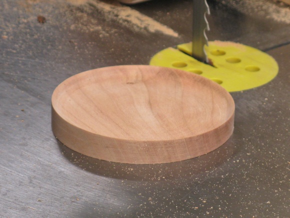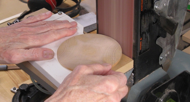 A few bases were cut circular and the edges were sanded with a circle-sanding jig on the belt sander.