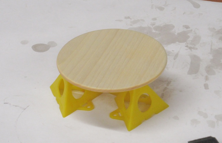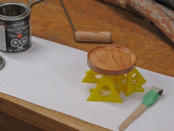 The bases received three coats of polyurethane varnish. Here the first of the three is starting to dry.