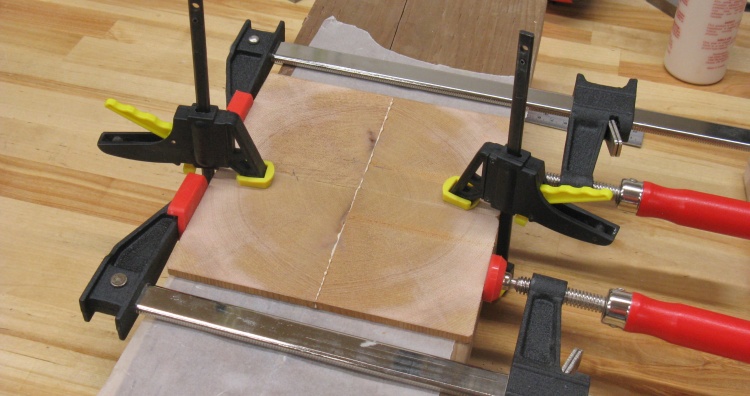 About half the bases were made by combining four slices. After flattening the sides, pairs were glued together and then the pairs were combined as seen here.
