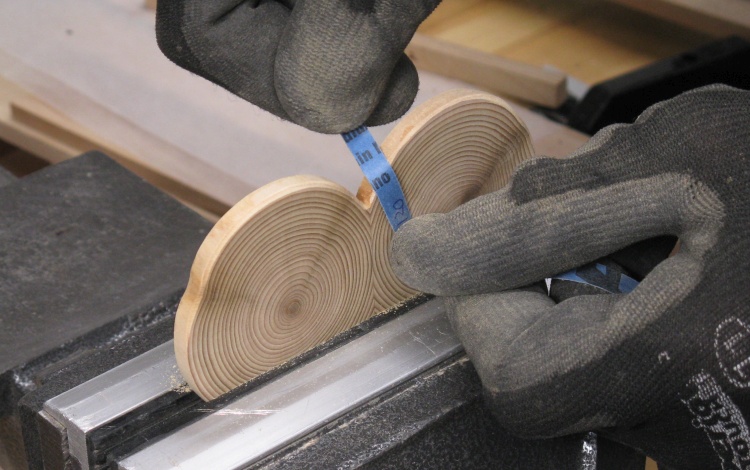 All the bases had the edges rounded and after some coarse sanding by hand or with sanders, the final rounding was done using sandpaper strips as seen here.