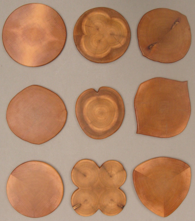 The outlines of most of the bases followed the Cedar grain. This particular one is a 4-lobed shape.
