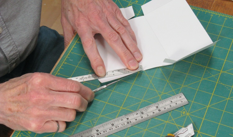 When this shot was taken, one side has already been cut and the resulting pieces held together with green masking tape.