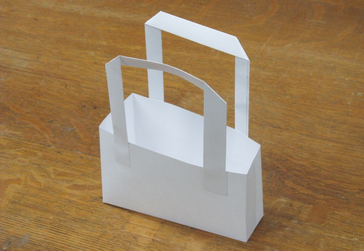 The bag has 5 sides plus gluing tabs and I cunningly arranged those to fit on a standard 8-1/2 x 11 sheet. The pattern was printed in light grey (barely visible in the photo) and the bags were cut and folded to those lines.