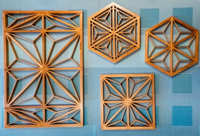 Kumiko trivets, I thought I'd try my hand at a trivet since it was something we could use. Despite the source of inspiration my trivets are, to paraphrase Douglas Adams; almost, but not quite, entirely unlike his. I ended up making a variety of designs (one varying enough that it actually turned out to be a breadboard) and this log trivet pair is the first of them.