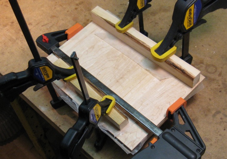 The vertical clamps with the scrap wood ensure that the pieces are not offset vertically from each other.