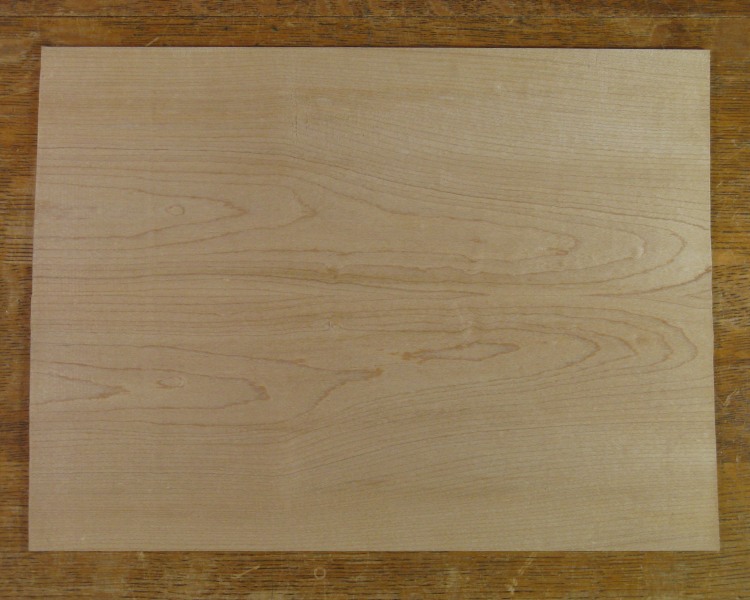 Here the top ply consisting of two of the thin pieces has been completed. The plies were book matched so the grain pattern is largely symmetric on the two sides (or top and bottom in this rotated photo).