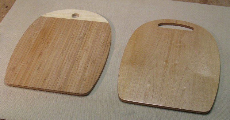 Here is the bamboo trivet used as a shape model and the new trivet side-by-side. Clearly evident is the highly innovative design of the handle hole on the new model.