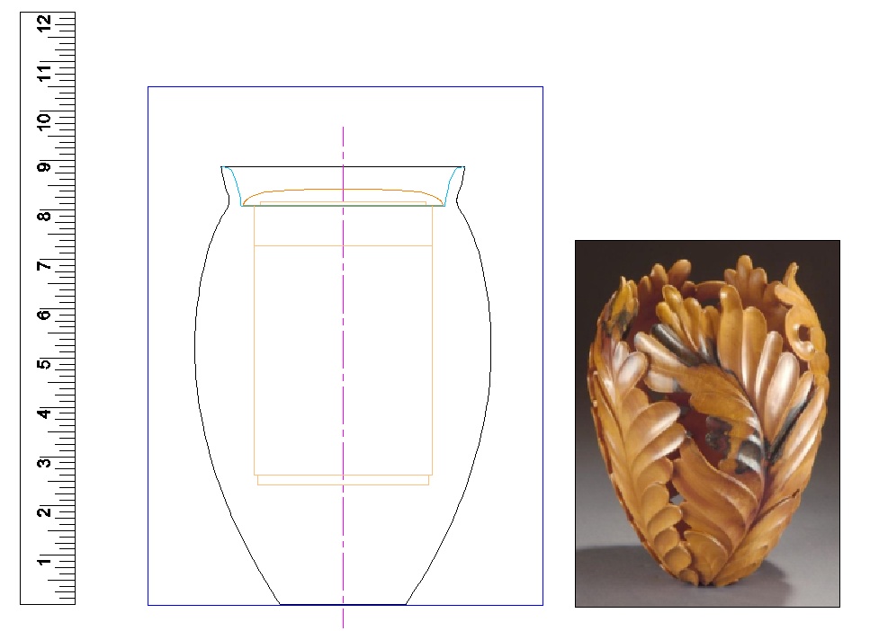 This is a photo of the blank with all the depth slots cut. The vessel shape can sort of be made out from the bottoms of the slots.