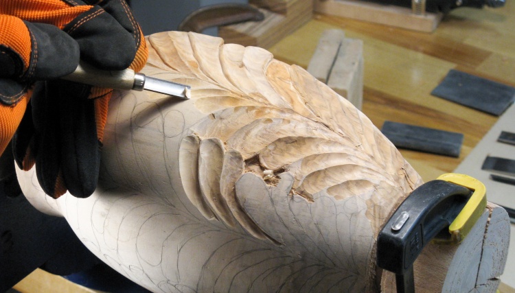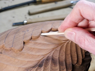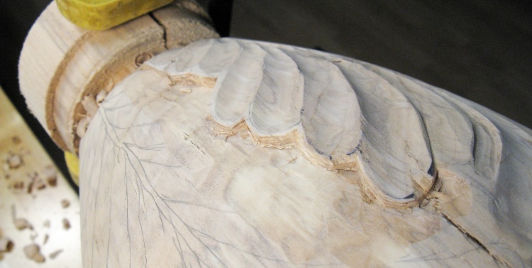 I started by outlining the first set of top leaves, which would let me lower the wood level for the adjacent row of leaves that went "under" these.