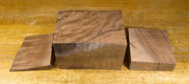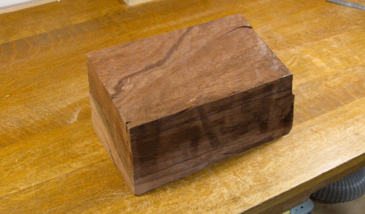 I started by cutting off the somewhat angled ends to get it ready for turning. The thicker piece on the right will be used for the top cover.