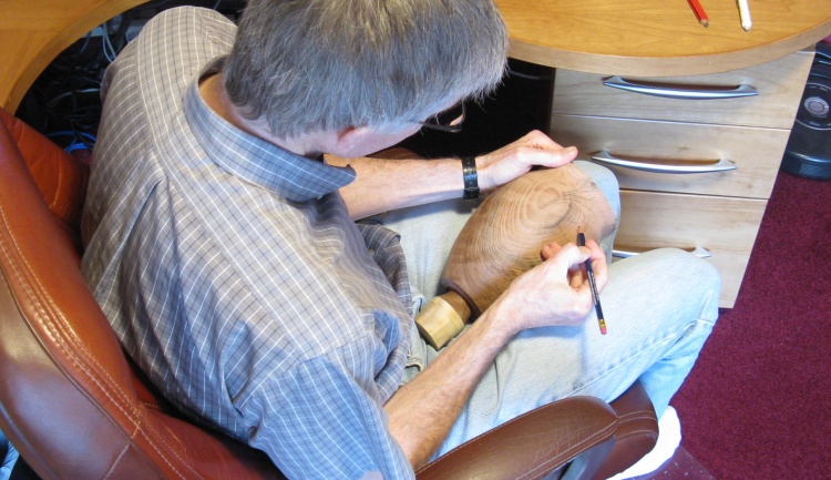The pencil lines forming the pattern had a very poor contrast with the redwood, so I ended up tracing over with a blue ink pen which not only gave better contrast but didn't rub off with handling either.