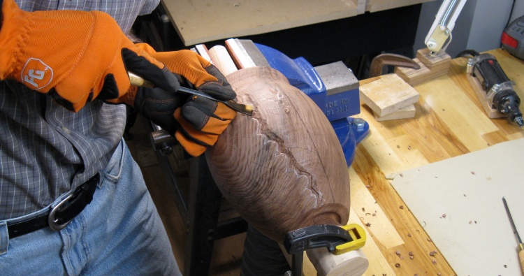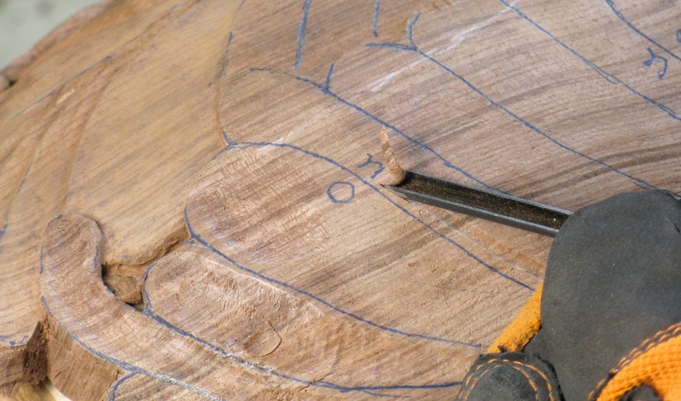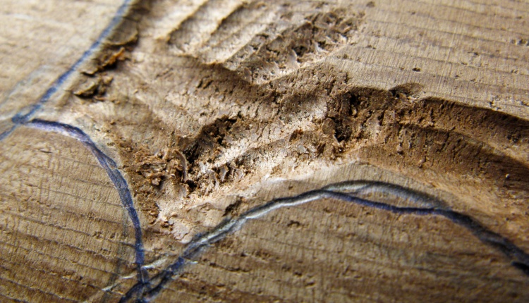 Using a chisel to remove the bulk of extra wood
