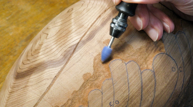 This area of wood happened to be hard enough that it could be cut cleanly with a chisel (which felt more like honest woodcarving than using a grinder).