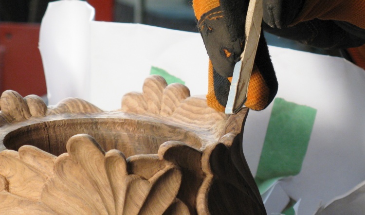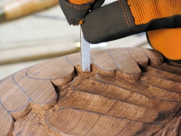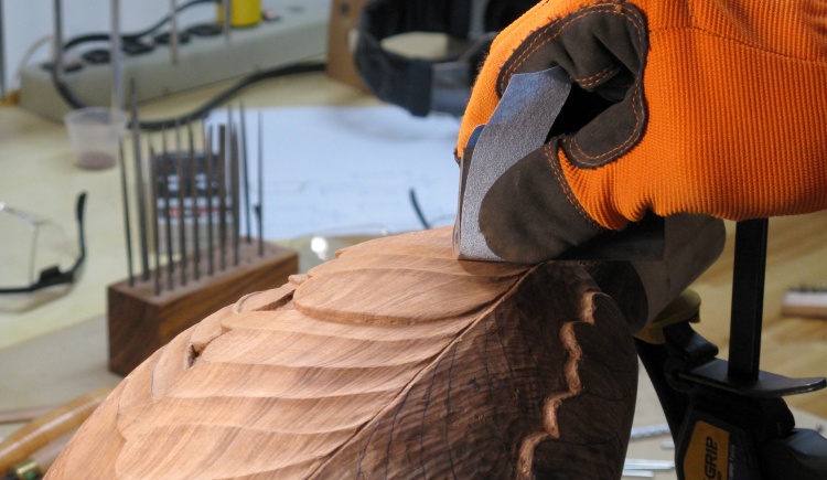 The carving corner of the bench