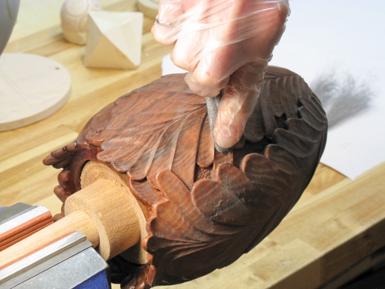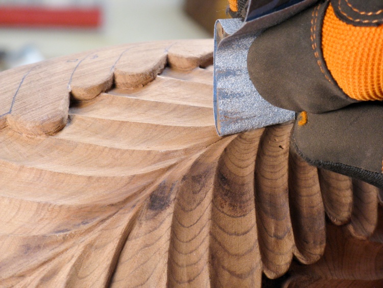 This is just a shot of more sanding, this time with the finer 220 grit and a smaller form to suit the narrower leaf shapes.