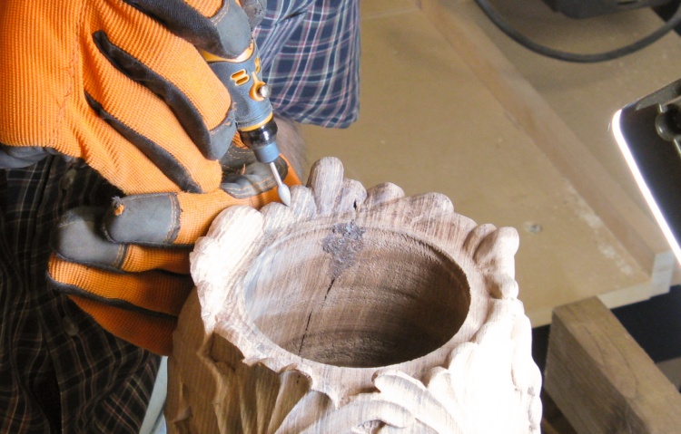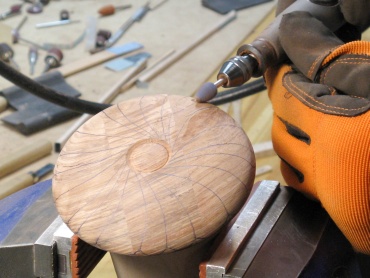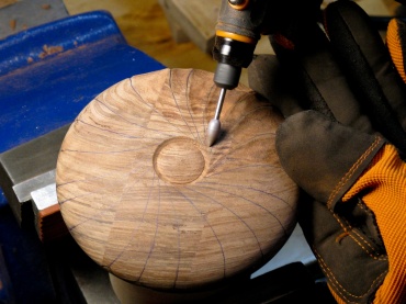 Here the pilot hole has been drilled and I'm starting to expand the hole using the hollowing tool.