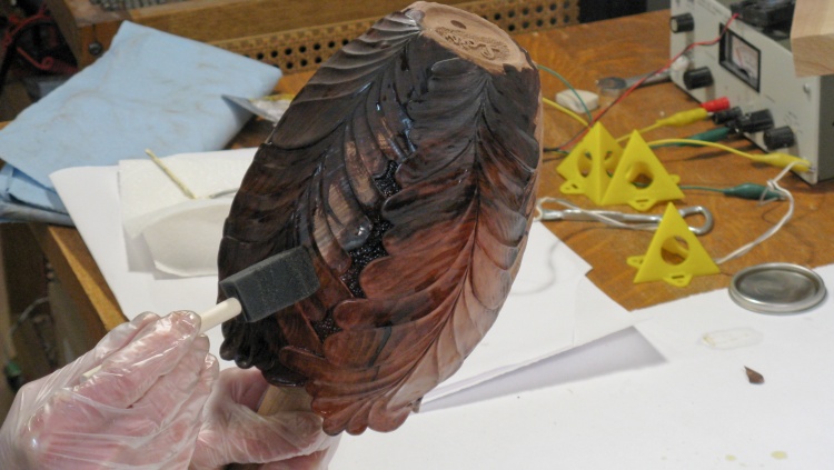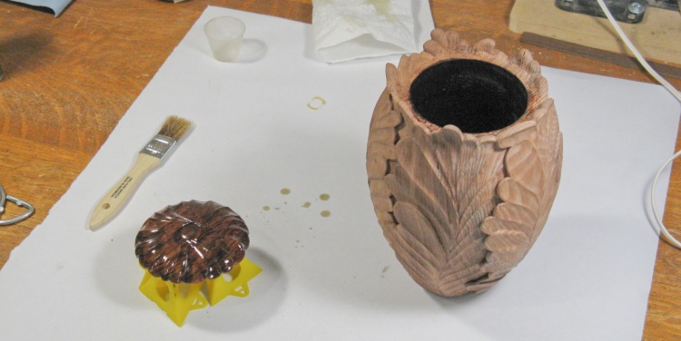 Then it was time to start putting the finish on. I began by varnishing the cover and just the inside of the urn, which both received three coats.