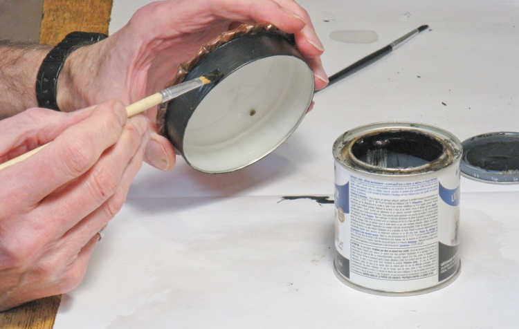 The silvery lid could be seen under the wood cover at certain angles so to make it less visible, I painted it a flat black.