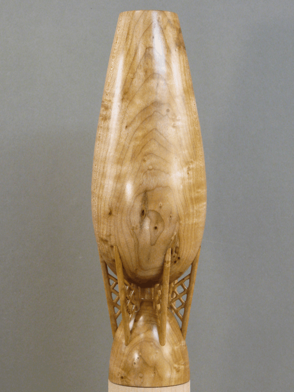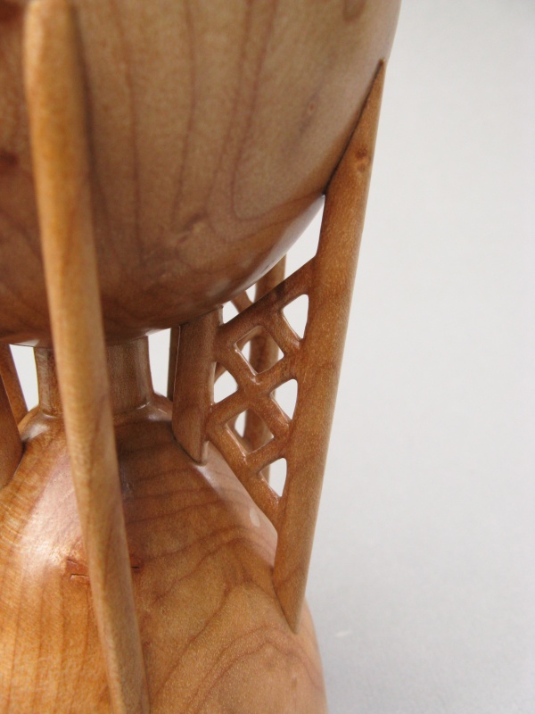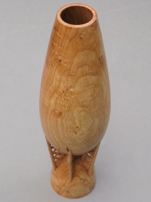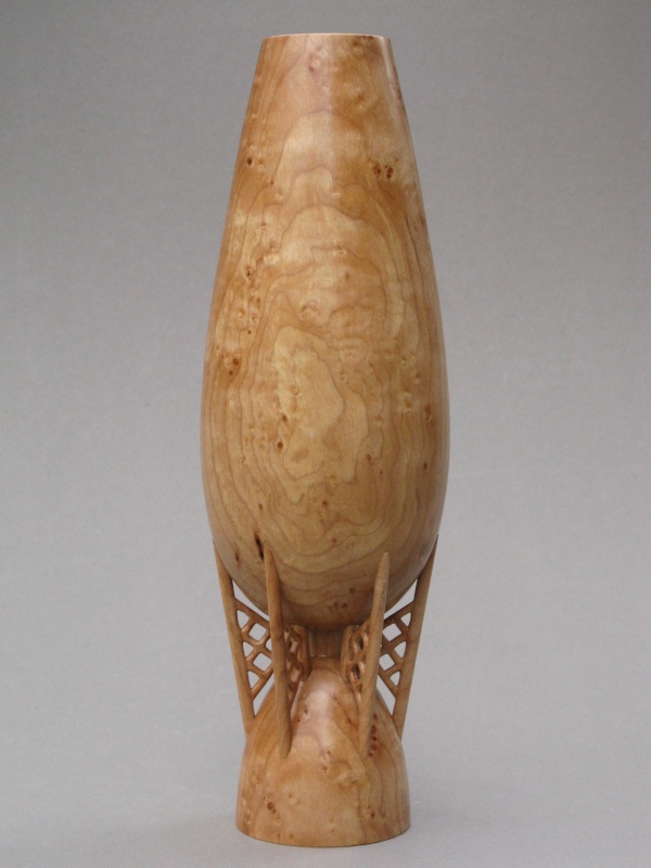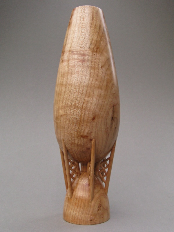 constructed from a central turning which was then modified by adding six separate support struts, with everything made from Figured Maple. I suppose theoretically it could have all been carved out of a single piece but I'm not that much of a glutton for punishment.