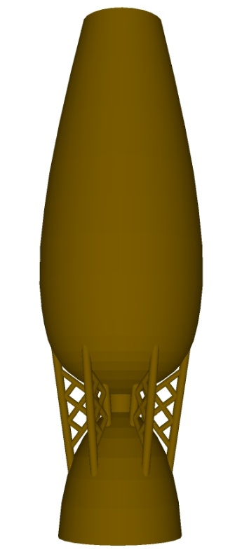 This vessel follows the geometry of the reinforced vessel that had inspired it which with some imagination, could be viewed as a (rather leaky) fuel tank interconnected with a rocket nozzle.