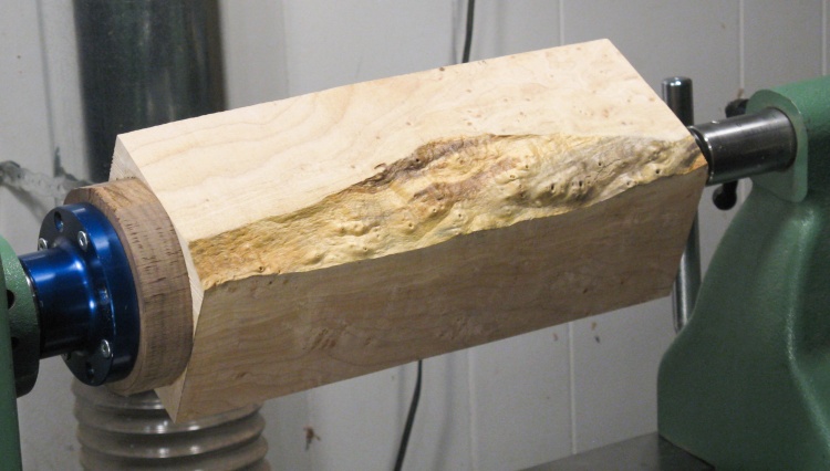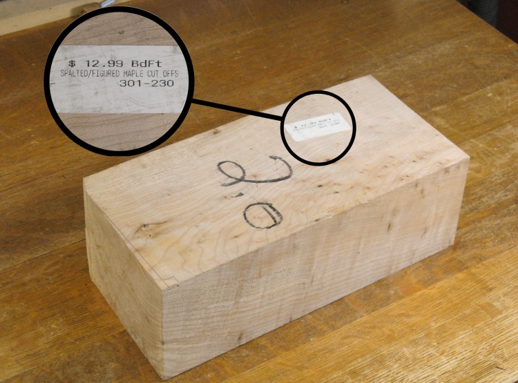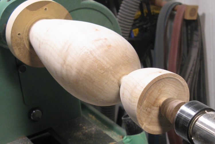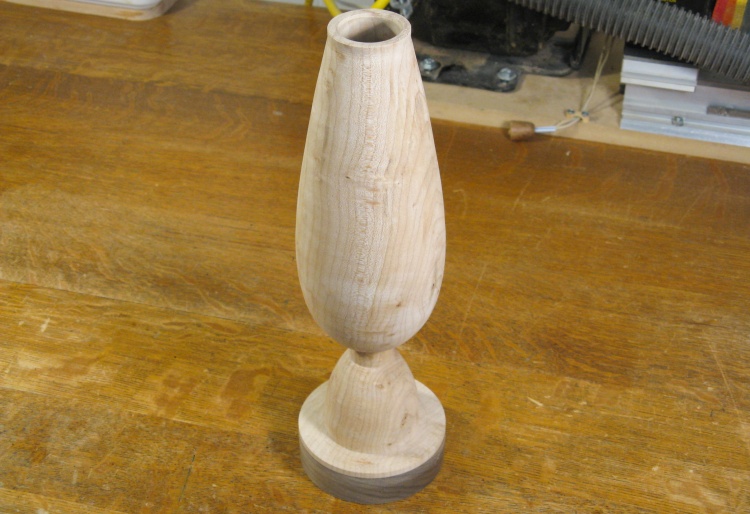 I happened to have a suitably-sized block of Figured Maple that I thought it would look nice in the tapered shape of this vessel (2.0 board-feet of it, in fact).