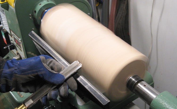 As usual, I used a roughing gouge to round the block into a cyllinder as shown in this photo, which is tragically lacking any flying shavings.
