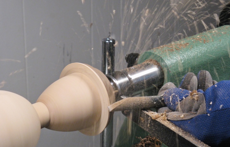 I started with this high-angle bowl gouge and switched to a scraper for final smoothing.
