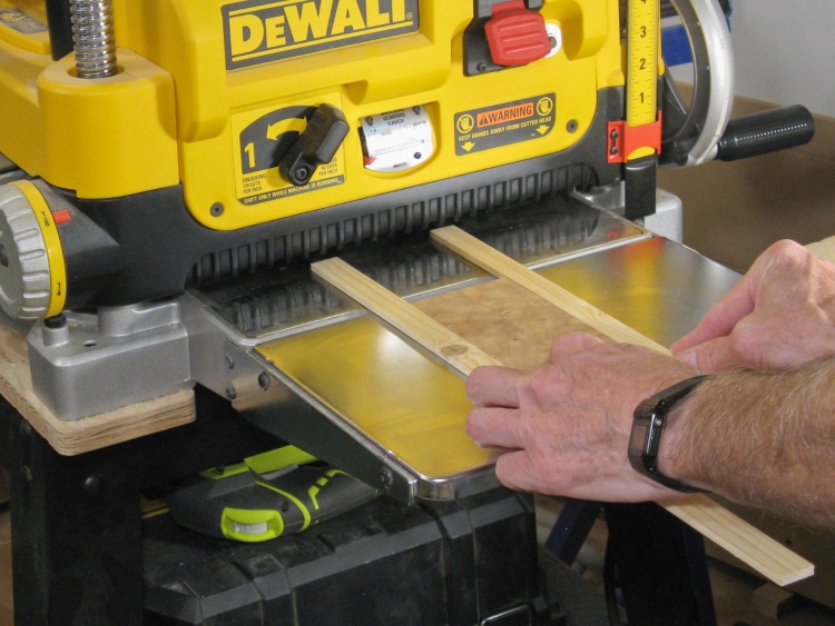 Those strips were cut a bit thick and in this shot I'm putting them through the thickness planer to bring them down the size I'll need (0.16" thick).