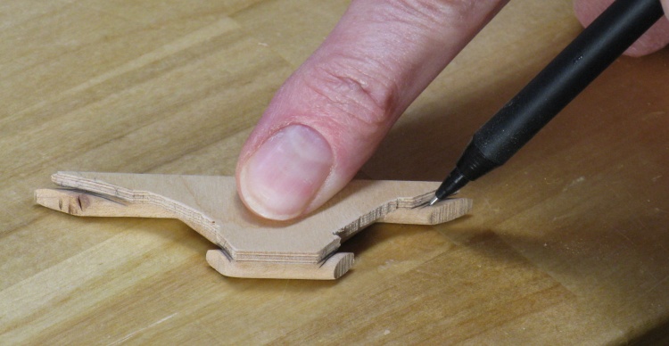 One girder had a tiny knot which messed up one end so I glued in a patch (the ugly one on the right). But in case that wasn't good enough, I also made a spare girder.