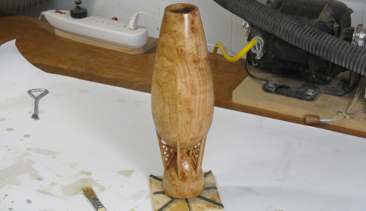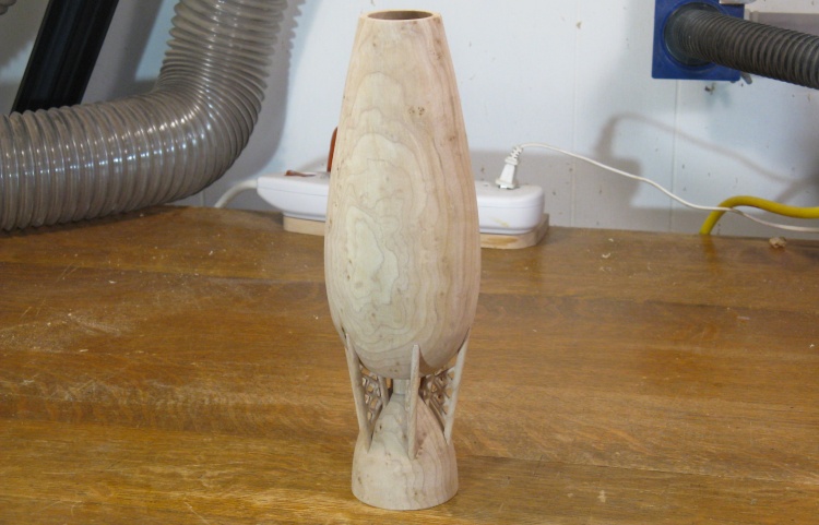 Then it came off the lathe for a brief respite on the bench, but it will need to go back on to get the bottom finished off.