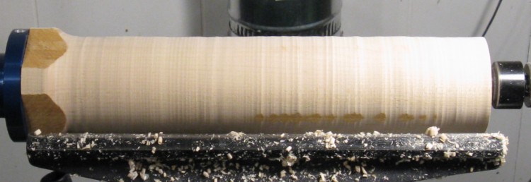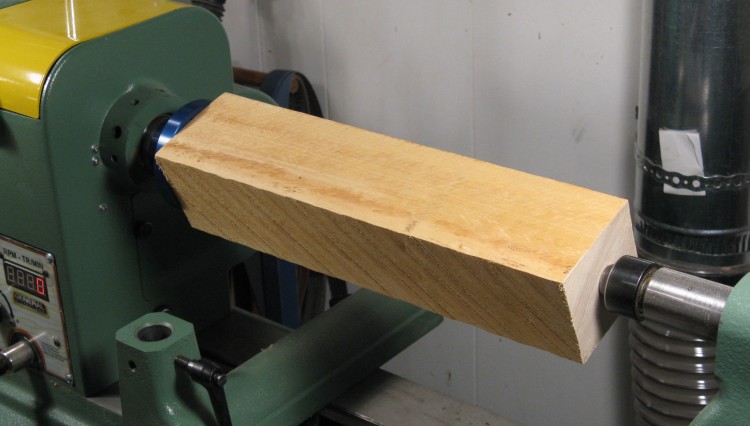 Blank mounted on lathe