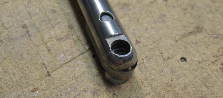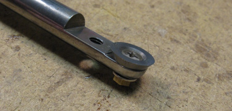 Unfortunately the narrow vessel opening meant that the the cutter was at a very low angle to the walls, and it consequently wasn't very effective at cutting. I decided I needed to try a different type of cutter. One family of tools uses carbide tips in a scraping action. Rather than purchase the full tool (which wasn't long enough anyway) I just bought a replacement tip and fashioned the appropriate hardware to mount it to my existing tool. The tool store guy said "that's a pretty expensive washer", though I'm pretty sure he knew it was a precision carbide cutting bit...