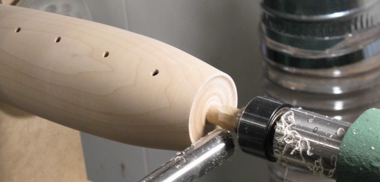 Here the bulk of the material from the end has been removed as I worked back toward the faceplate end.