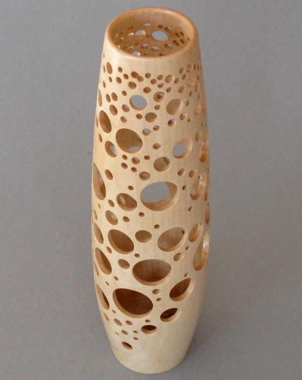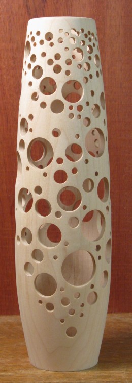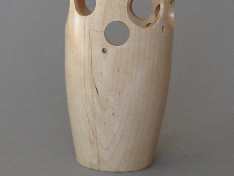 I had in mind to make a pierced and turned vessel. I wasn't too sure how feasible it would be to turn a deep and narrow vessel with the tools I had so this one was a bit of an experiment. As it turned out, the answer was something like "two inches shorter than what I started with".