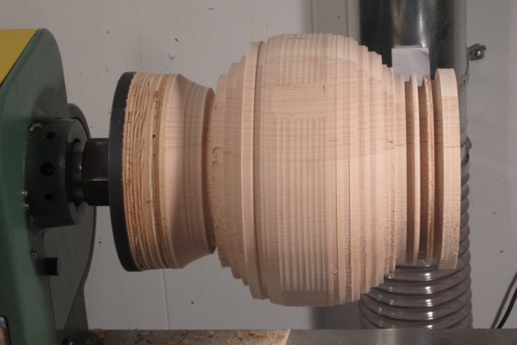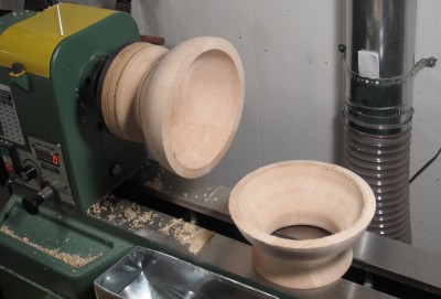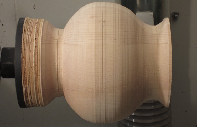 Here the bodies have been reduced in diameter and are ready for final rounding. The flanges at the ends will eventually be sanded to blend into the vessel body.